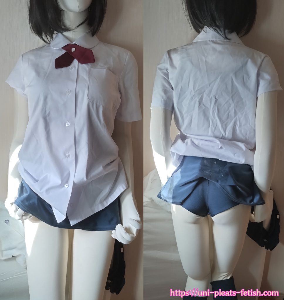 まずは、、スク水の上からブラウスをば… 半袖ですが…